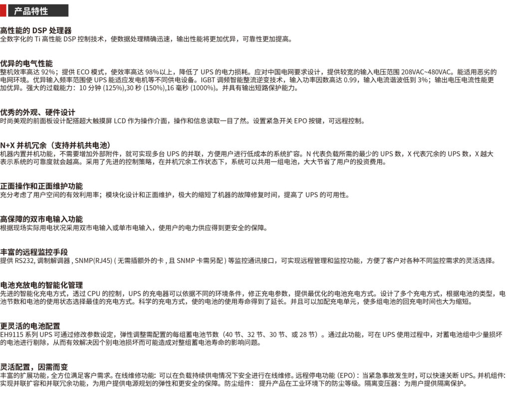 EH9115 系列工頻在線式三進(jìn)單出UPS (10KVA-40KVA)