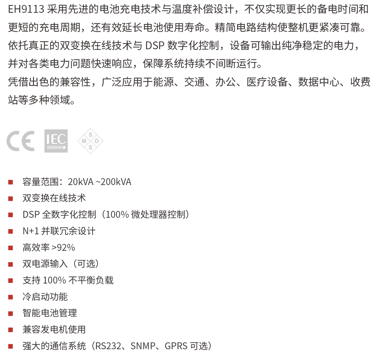 EH9115系列工頻在線式三進(jìn)三出UPS 10KVA-300KVA