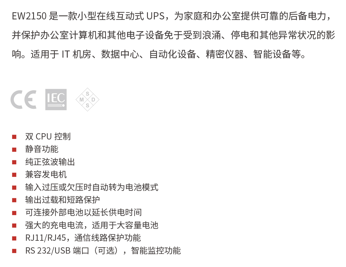 EW2150 系列在線互動(dòng)式 UPS(純正弦波)