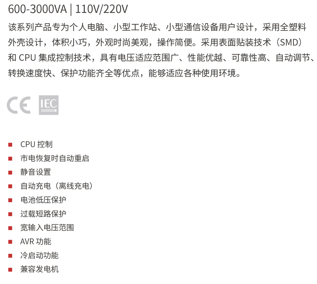 在線互動(dòng)式 UPS(修正正弦波)600-3000VA