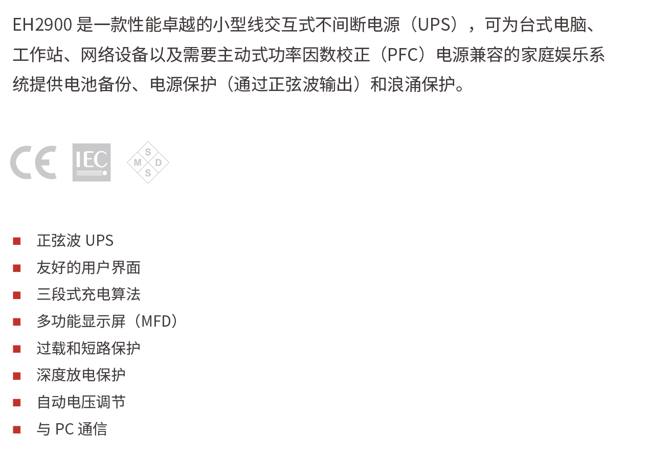 在線互動(dòng)式UPS(純正弦波)EH2900系列