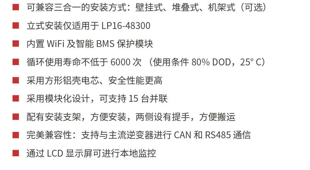 LP1600 系列壁掛式磷酸鐵鋰電池